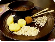 불린 팥을 찬물에 넣고 1시간 30분 삶아 으깨어 팥물을 만듭니다. 찹쌀로 새알 크기의 새알심을 빚어 끓는 팥물에 넣고 15분간 더 끓입니다. 마지막에 소금으로 간을 맞추면 완성입니다.
